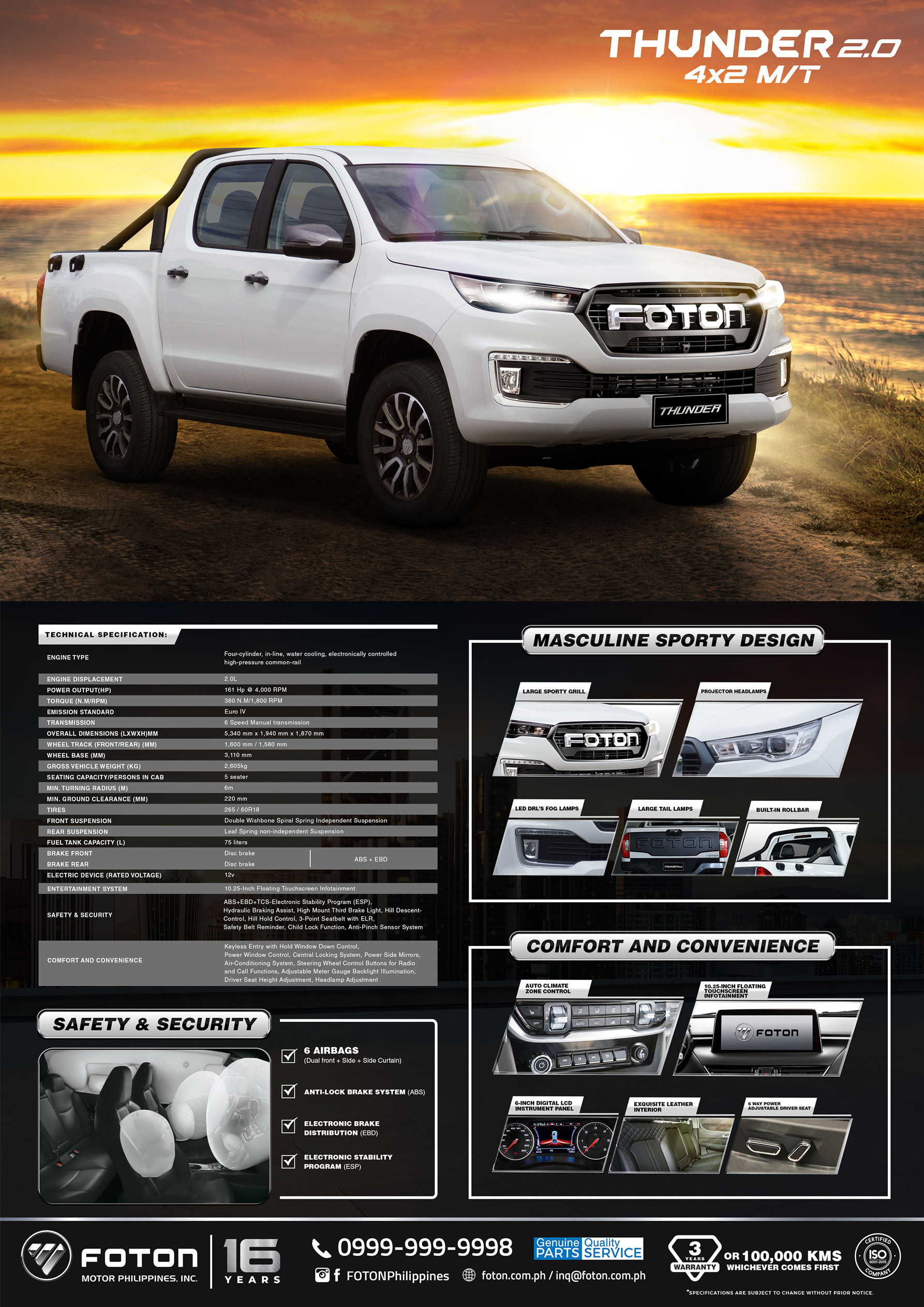 Safety & Security - BOSCH Electronic Stability Program (ABS + EBD + TCS + HBA + VDC + HBB + HHC + HDC + BLF), Tire pressure monitoring system, High Mount Third Brake Light, Dual Air Bags, 3-Point Seatbelt with ELR, Safety Belt Reminder, Child Lock Function, Body anti-theft,